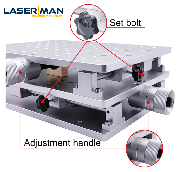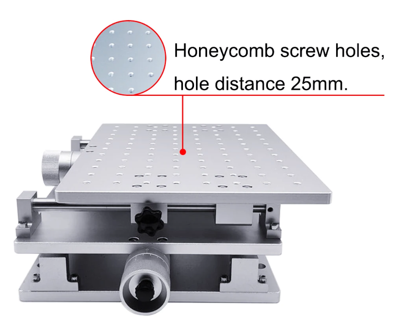 Bàn gá XY thủ công (2D Workbench) là phụ kiện hỗ trợ đắc lực cho các dòng máy khắc laser. Sản phẩm giúp di chuyển chính xác theo trục X/Y, tiện lợi trong việc căn chỉnh, định vị phôi khắc.