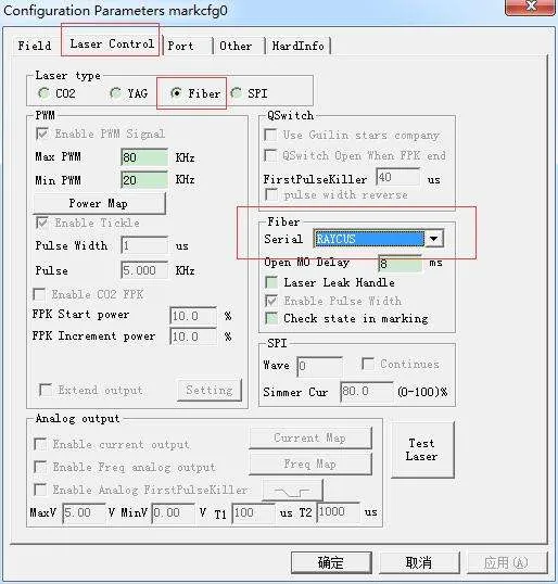 Tham số (F3) – Điều khiển Laser, Loại Laser – Sợi quang, Sợi quang – Nối tiếp, chọn nguồn laser của bạn một cách chính xác.