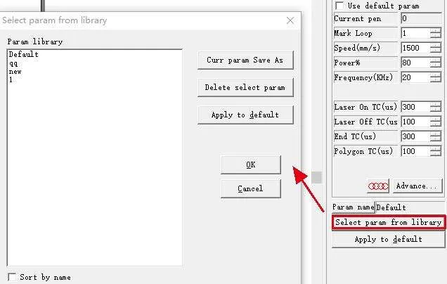 Chọn tham số từ thư viện: Khi nhấn nút này, một hộp thoại sẽ bật lên như hình minh họa. Chúng ta có thể lưu các tham số vào tệp đĩa hoặc xóa các tham số khỏi tệp.