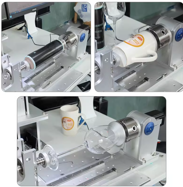 Được sử dụng rộng rãi trong khắc laser trên ly cốc, ống, vòng tay, linh kiện tròn và nhiều sản phẩm có hình dạng đặc biệt.