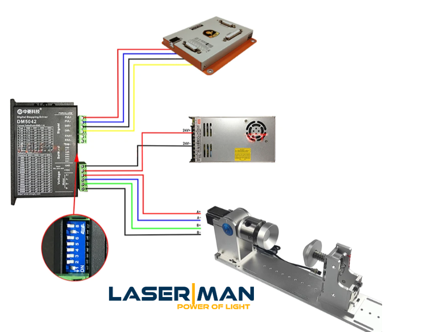 👉 Có, tốc độ xoay được điều khiển trực tiếp qua phần mềm (EZCAD, JCZ, MarkingMate…) hoặc qua driver stepper đi kèm.