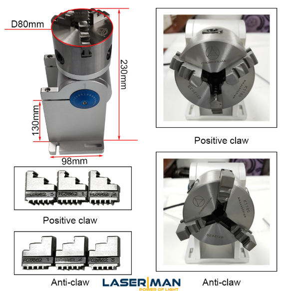Bao gồm kích thước, mâm cặp Ø80mm, claw dương/âm, và phụ kiện đi kèm.