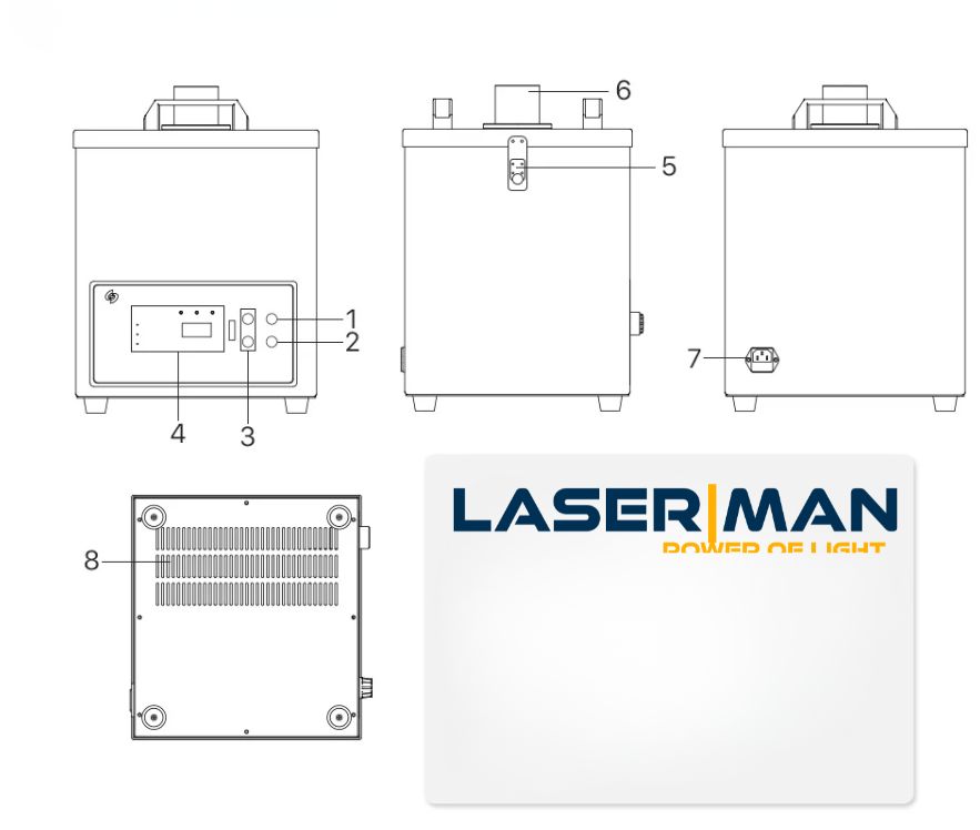 Đặc điểm: Thiết kế vuông gọn, có tay xách tiện di chuyển, đặt vừa dưới bàn máy laser mini