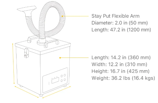 – Nối ống hút mềm linh hoạt, dẫn khói từ máy laser vào hệ thống lọc.