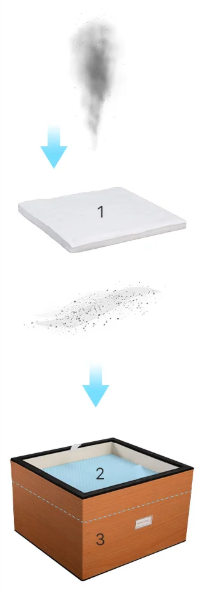 2️⃣ Lọc HEPA – Giữ lại hạt bụi mịn, khói laser nhỏ đến 0.3μm.