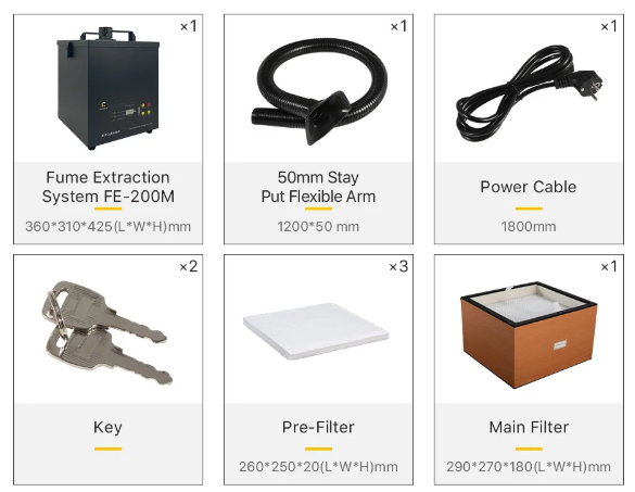 Cloudray FE-200M là hệ thống hút khói – lọc bụi chuyên dụng cho máy khắc, máy cắt laser mini, máy in khắc code, giúp loại bỏ mùi khét và bụi mịn phát sinh trong quá trình khắc.