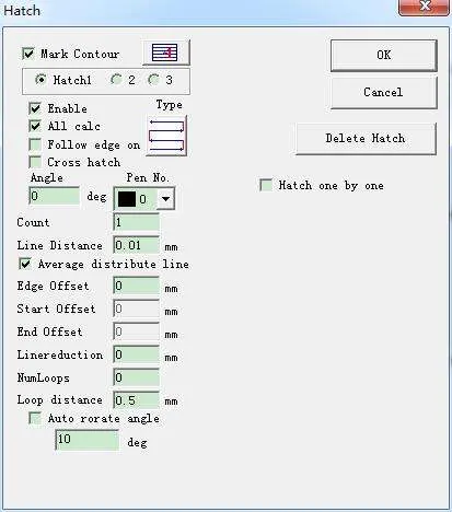 Mỗi bộ Hatch có thể gán Pen No., tương ứng với một bộ thông số khắc riêng biệt.