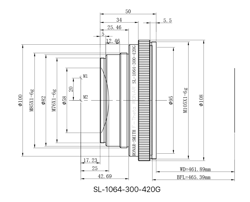 Thấu kính quét F-Theta 1064nm dòng SL(scanning Lens) Series là thành phần quang học chuyên dụng cho các hệ thống laser galvo dùng trong khắc, cắt, khoan vi lỗ và các ứng dụng chính xác cao. Sản phẩm được thiết kế tối ưu cho bước sóng 1064nm, phù hợp với các loại laser Fiber, YAG, hoặc MOPA, đảm bảo khả năng quét đồng đều, tiêu cự chính xác và vùng khắc rộng.