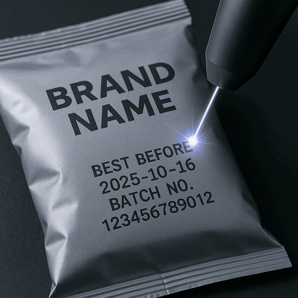Máy khắc laser cho nhựa có thể in nhãn hiệu, ngày sản xuất, số lô, mã vạch và các thông tin khác trên túi đóng gói để nhận dạng và truy xuất nguồn gốc của túi.