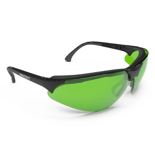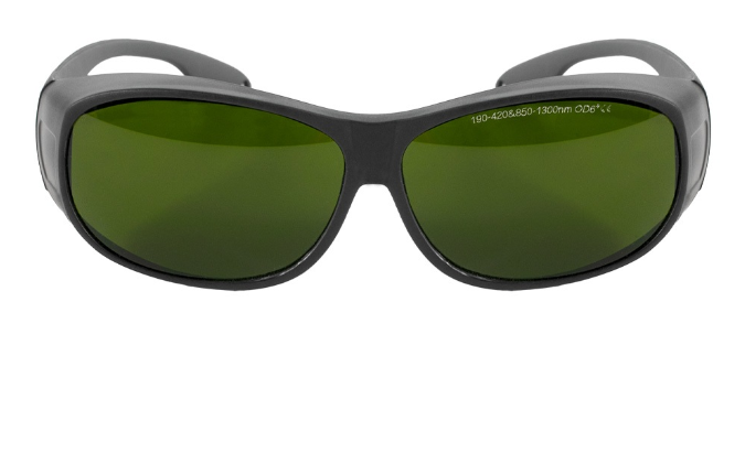 Kính Fiber/YAG ( OD 6+, 1000–1100 nm) – kính goggle đen với tròng xanh lá, phù hợp bước sóng Fiber/YAG, Optical Density OD6+