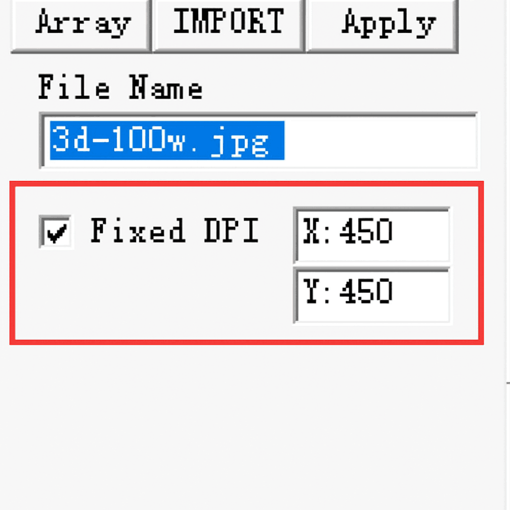 Giá trị DPI là yếu tố then chốt. Để thiết lập giá trị DPI phù hợp, thường là 100~500. Giá trị DPI càng lớn, điểm laser càng nhỏ và hình ảnh càng mịn.