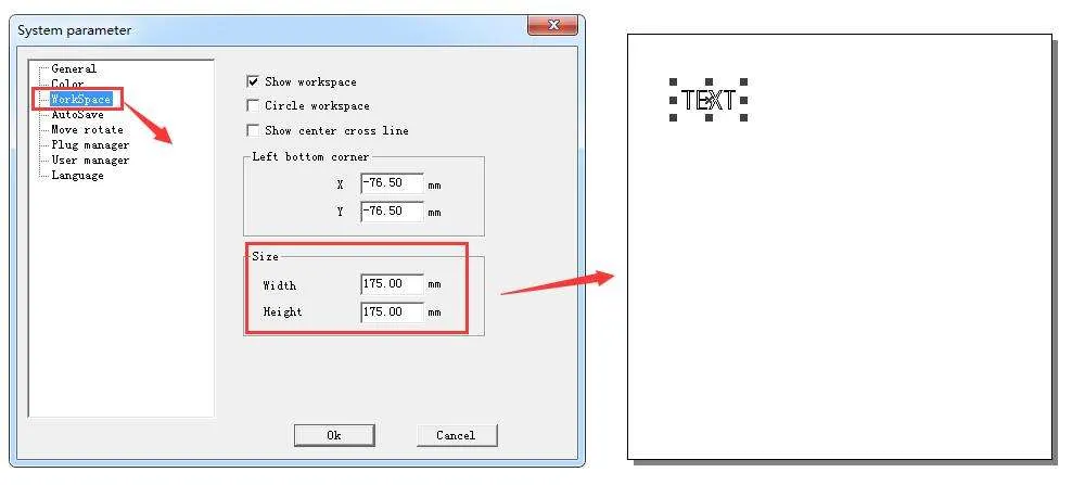 File – Tham số hệ thống – Không gian làm việc , điều chỉnh giá trị kích thước .