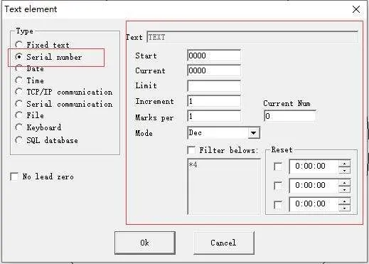 Đánh dấu vào “ Enable Variable Text ”, nhấp vào “ Add ”, và chọn “ Serial Number ” để bắt đầu thiết lập.