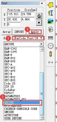 Nhấp vào mũi tên tam giác nhỏ trong cột Văn bản ở bên trái để chọn Phông chữ mã vạch, sau đó tìm QRCODE trong hộp thả xuống bên dưới và nhấp để chọn.
