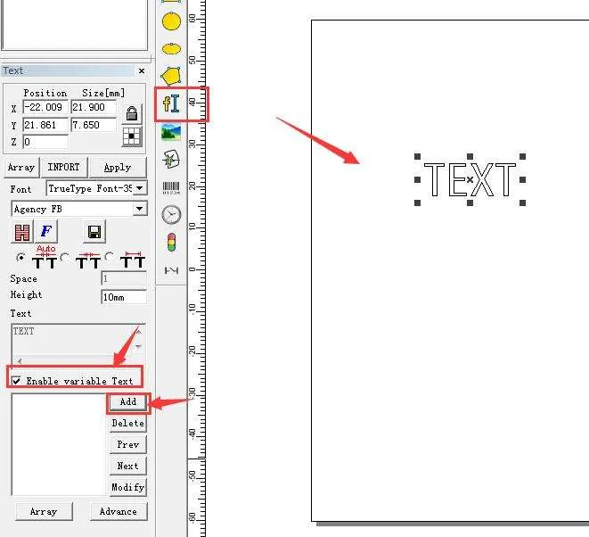 1. Mở Ezcad2, trước tiên nhấp vào Draw Text , thêm một đoạn văn bản.