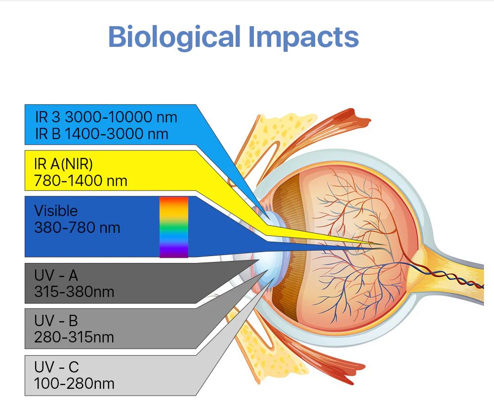 Laser hồng ngoại và UV không nhìn thấy được bằng mắt → nguy hiểm vì mắt không có phản xạ.