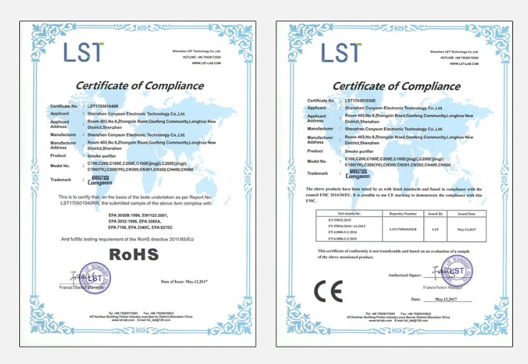 Đạt tiêu chuẩn CE & RoHS về an toàn điện và môi trường.