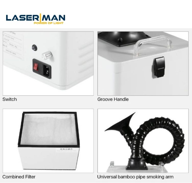 Máy hút khói mini EF01 A10 (100W) là dòng thiết bị lọc khói nhỏ gọn, chuyên dùng cho máy khắc laser mini, máy in khắc code, máy hàn vi điểm hoặc khu vực R&D nhỏ.