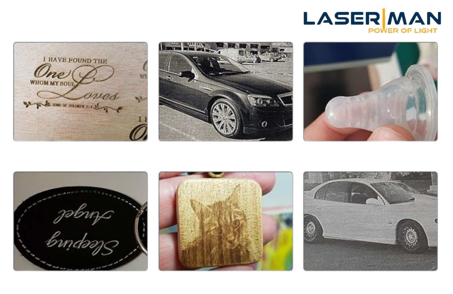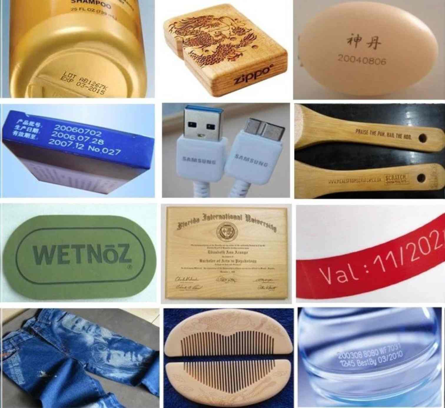 - Khắc logo, mã vạch, số seri, hoa văn trang trí trên vải, nhựa, gỗ, và các vật liệu phi kim khác.