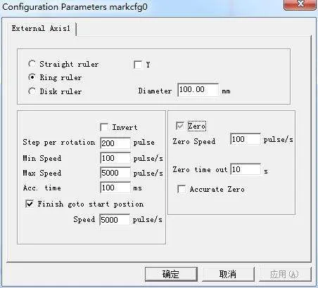 Zero: Trục giãn nở hiện tại có tín hiệu đầu vào chuyển đổi zero hay không. Nếu không có tín hiệu zero, phần mềm không thể xây dựng tọa độ tuyệt đối. Khi đánh dấu một bộ phận, chúng ta cần đánh dấu mọi chi tiết ở cùng một vị trí. Để đánh dấu hình ở cùng một vị trí mỗi lần, hệ thống sẽ lấy trục giãn nở hiện tại làm điểm gốc mặc định trước khi đánh dấu trong trường hợp không có tín hiệu zero. Sau khi xử lý một chi tiết, hệ thống sẽ tự động di chuyển trục về vị trí ban đầu. Bằng cách này, mỗi chi tiết sẽ được đánh dấu ở cùng một vị trí.