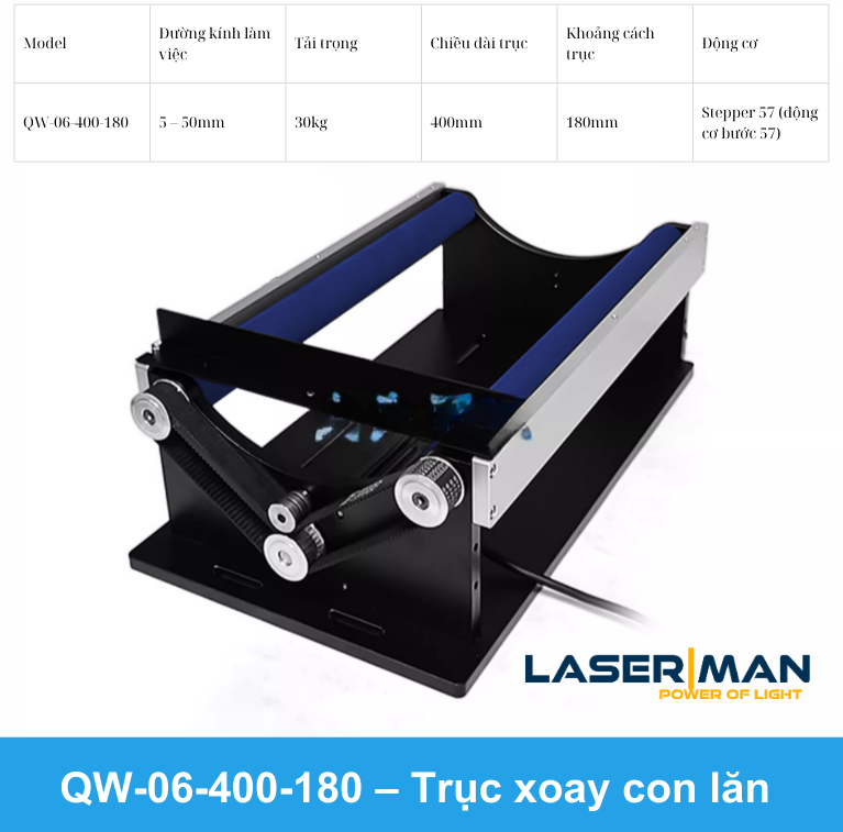 👉 Dễ dàng kết nối với máy khắc/hàn laser, hỗ trợ phôi dài, ổn định khi xoay.