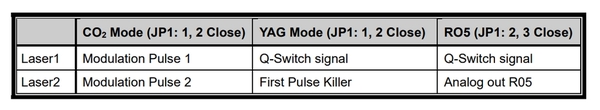 Ghi chú chế độ Laser1/Laser2 (liên quan jumper JP1):