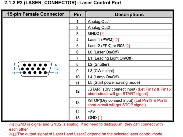 P2 – LASER_CONNECTOR: Cổng điều khiển laser + analog output (D-Sub 15 pin).