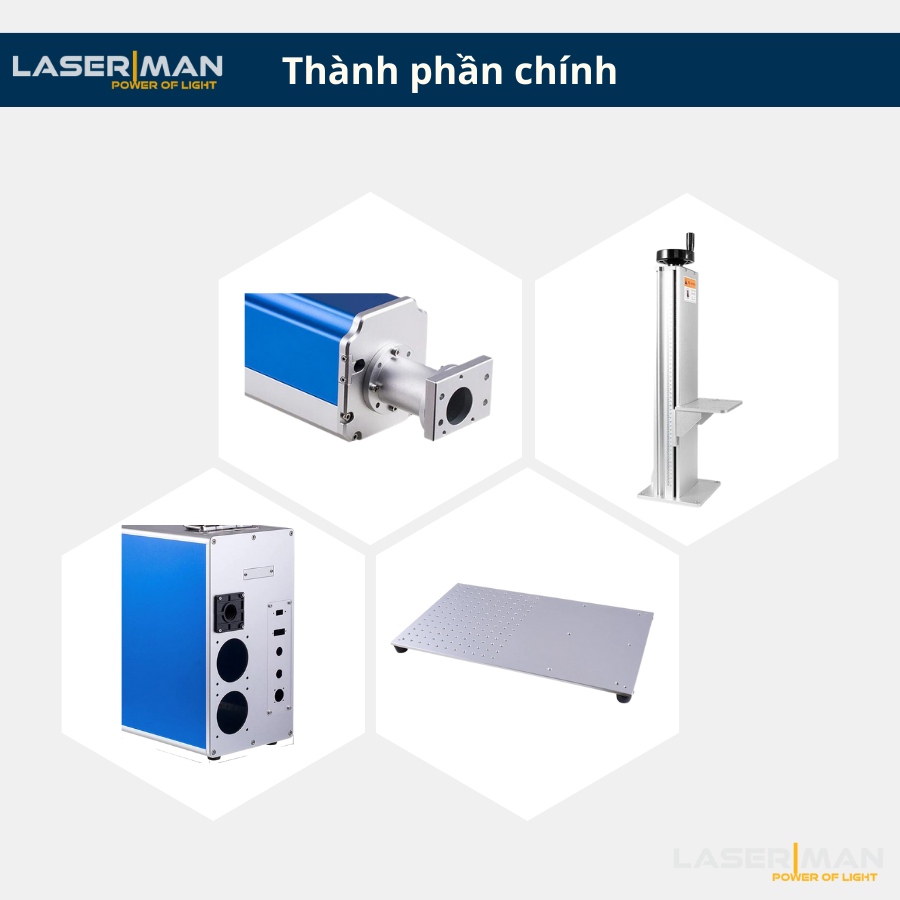 Bộ vỏ máy khắc laser tiêu chuẩn bao gồm: arm gắn Galvo, bàn nâng hạ, mặt bàn làm việc và vỏ nguồn. Vỏ nguồn tích hợp, có thể chứa nhiều thành phần linh kiện và nguồn điện.