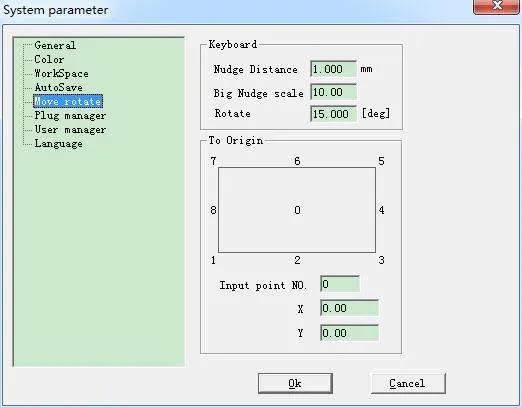 Trong System Parameters, mục Di chuyển & Xoay cho phép người dùng thiết lập các thông số điều chỉnh vị trí và góc của đối tượng khi sử dụng phím tắt điều hướng.
