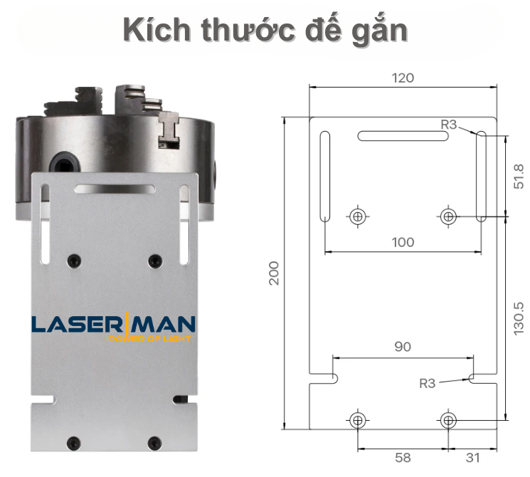 🧰 Tấm đế có sẵn rãnh và lỗ định vị – giúp dễ dàng lắp vào máy laser, CNC hoặc fixture tùy chỉnh.