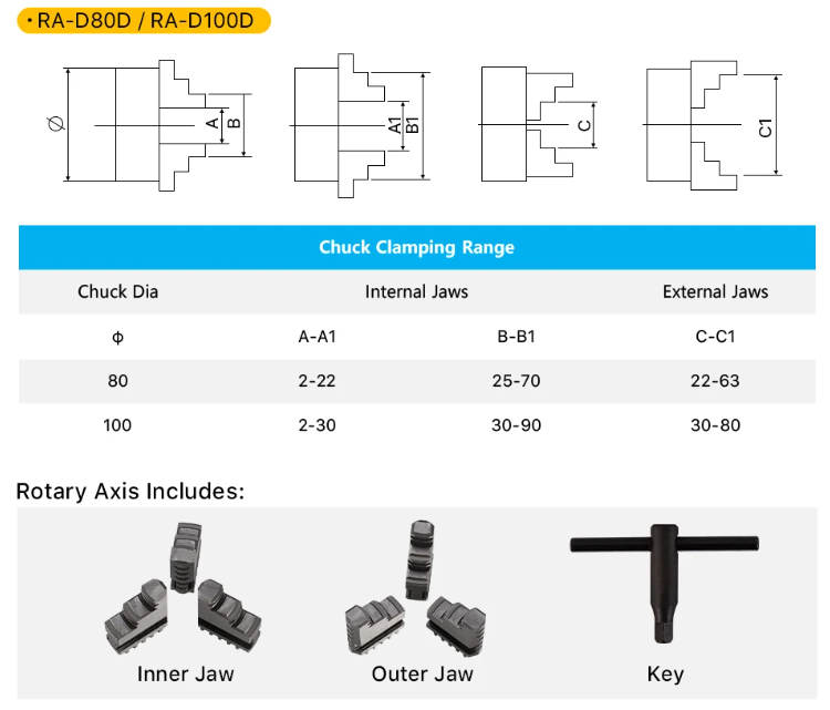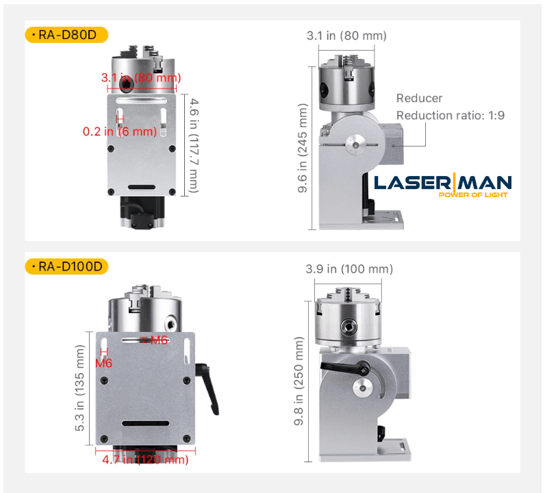 Trục xoay ba chấu (3-jaw) dòng D-Series là phụ kiện lý tưởng cho máy khắc laser khi cần xử lý các chi tiết tròn như bình giữ nhiệt, cốc kim loại, trục cơ khí, ống thép... Với thiết kế chắc chắn, độ chính xác cao và tương thích đa dạng dòng máy, D-Series là lựa chọn đáng tin cậy cho nhu cầu khắc ống – tròn – xoay.