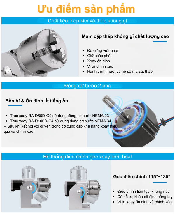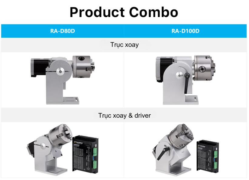 | Combo D100D | Trục xoay + motor + driver DM860S |